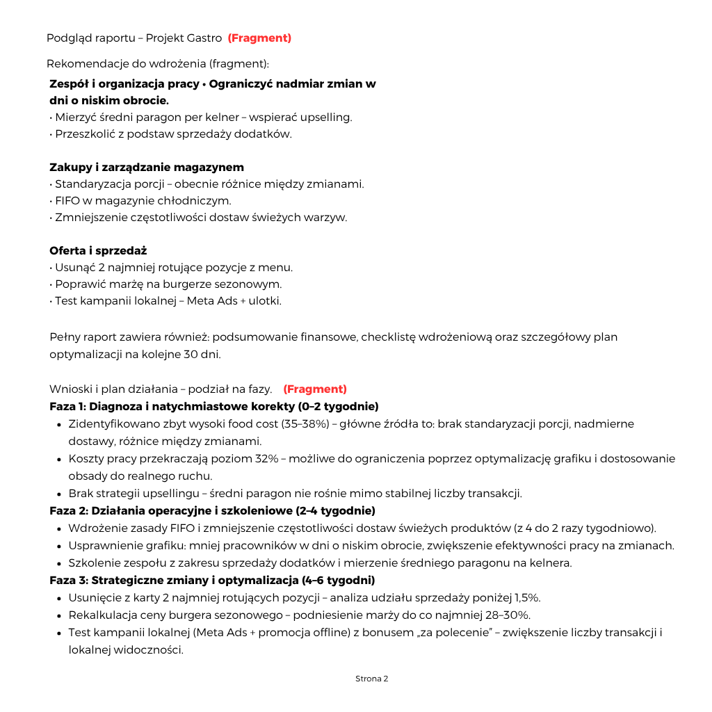 ● Raport tworzę osobiście, na podstawie danych z Twojego lokalu – bez szablonów i ogólników.